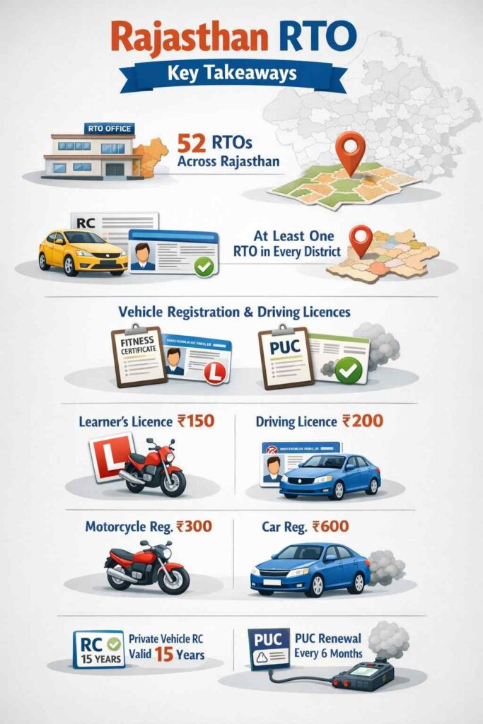 As of February 2026, the total number of RTOs in Rajasthan is 52. You can see the complete city-wise list from below; along with this, we have also provided their office addresses and contact numbers for your convenience.